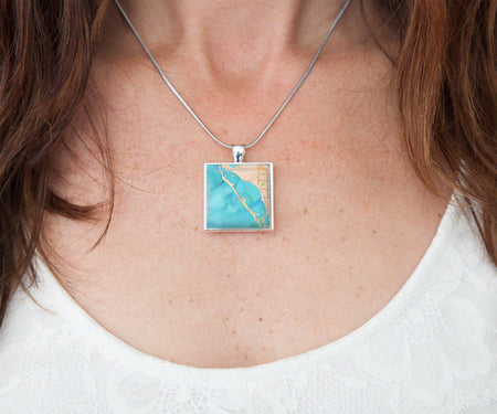 Longboat Key Watercolor Rectangle Necklace | Beach jewelry