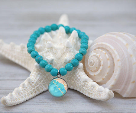 Longboat Key Watercolor Turquoise Beaded Bracelet | Handmade Jewelry