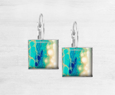 Seaside Glow Square Dangle Earrings | Handmade Earrings