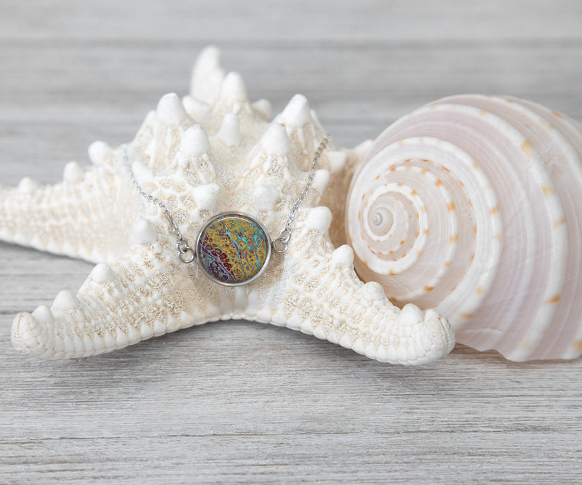 The Amber Waves Circle Necklace features original artwork designed by Beach Blossom Studio, created to inspire you like a trip to your favorite beach.  Make a statement with this beautiful piece of wearable art from our Amber Waves collection and click here to shop the full line of jewelry in this collection.