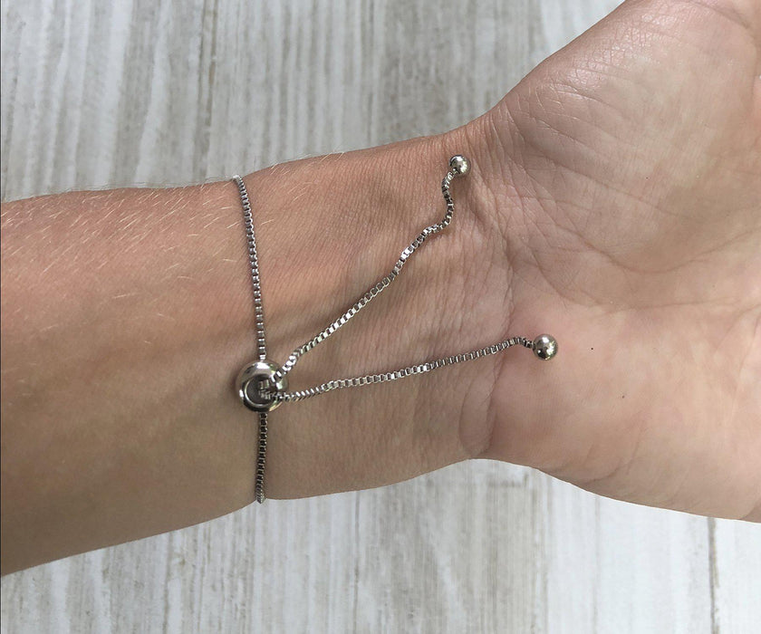 This pendant bracelet features an 18mm circle pendant on a stainless steel chain that is designed to perfectly fit every wrist. Simply adjust the bead to your desired size and it stays in place for a perfect fit every time!