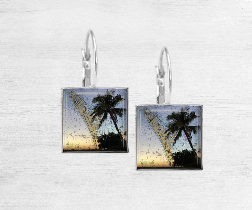 AMI Palm Tree Map Square Dangle Earrings | Handmade Earrings | Beach Jewelry