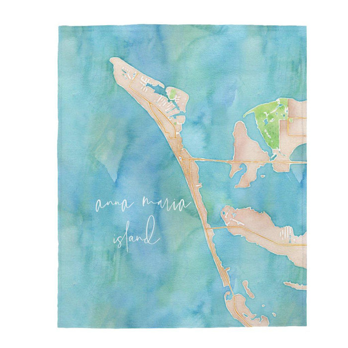 Anna Maria Island Watercolor Map Velveteen Plush Blanket