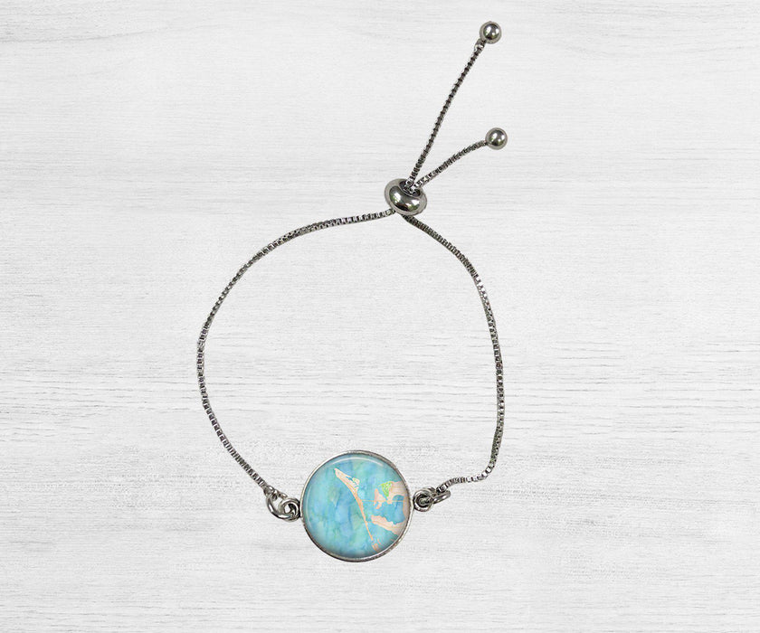 This pendant bracelet features an 18mm circle pendant on a stainless steel chain that is designed to perfectly fit every wrist. Simply adjust the bead to your desired size and it stays in place for a perfect fit every time!