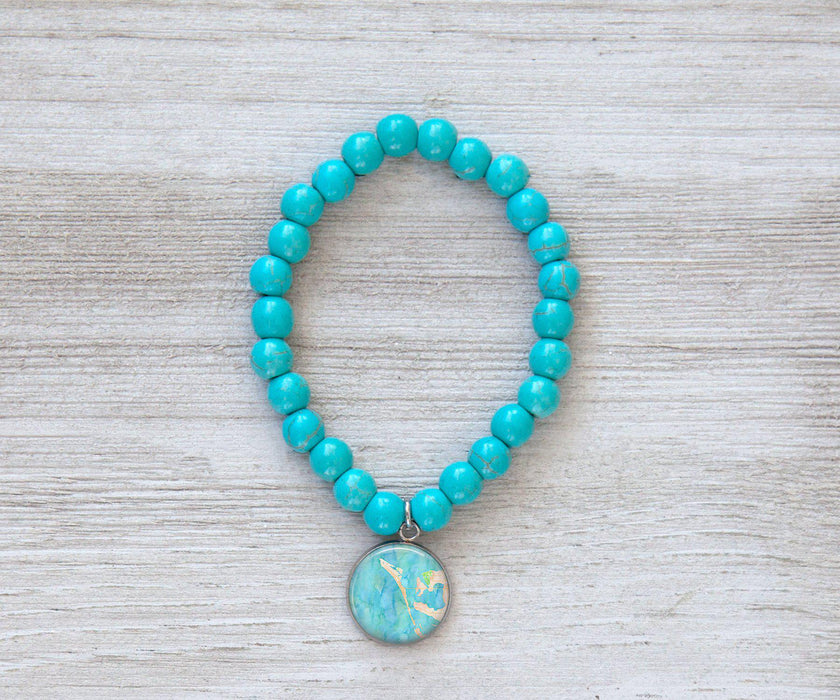 Anna Maria Island Watercolor Turquoise Beaded Bracelet | Handmade Jewelry