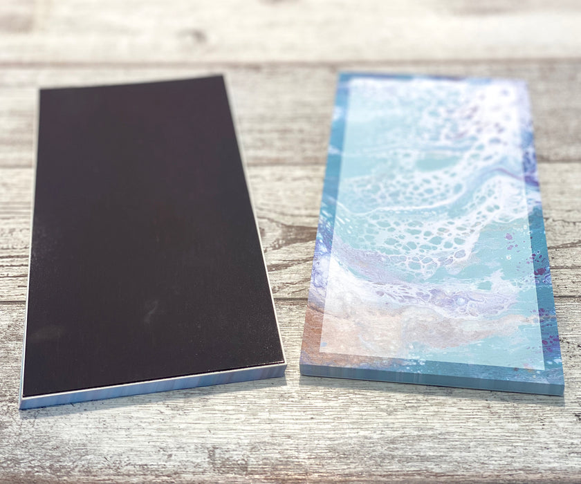 Refresh your productivity with this Magnetic Notepad! It's perfect for inspiring you to reach the next level in your work or for any list you may need to create. The entire back is a magnet so it's sure to stick to your fridge easily. They come in 2 original art designs- Tranquil Waters & Sunset Beach.