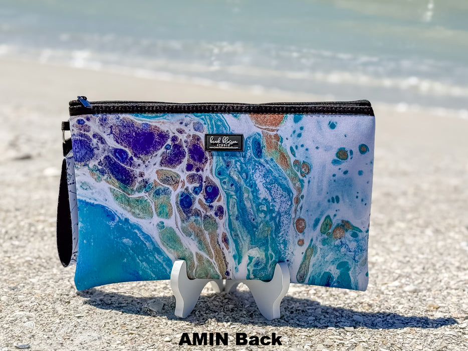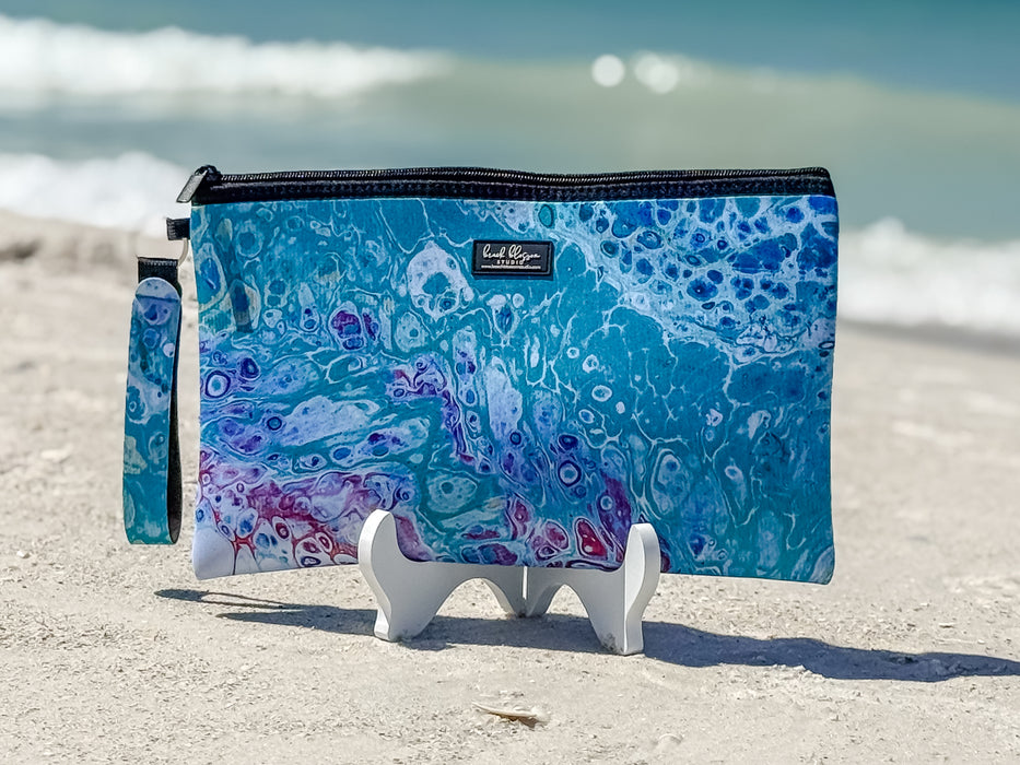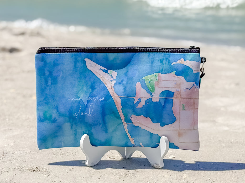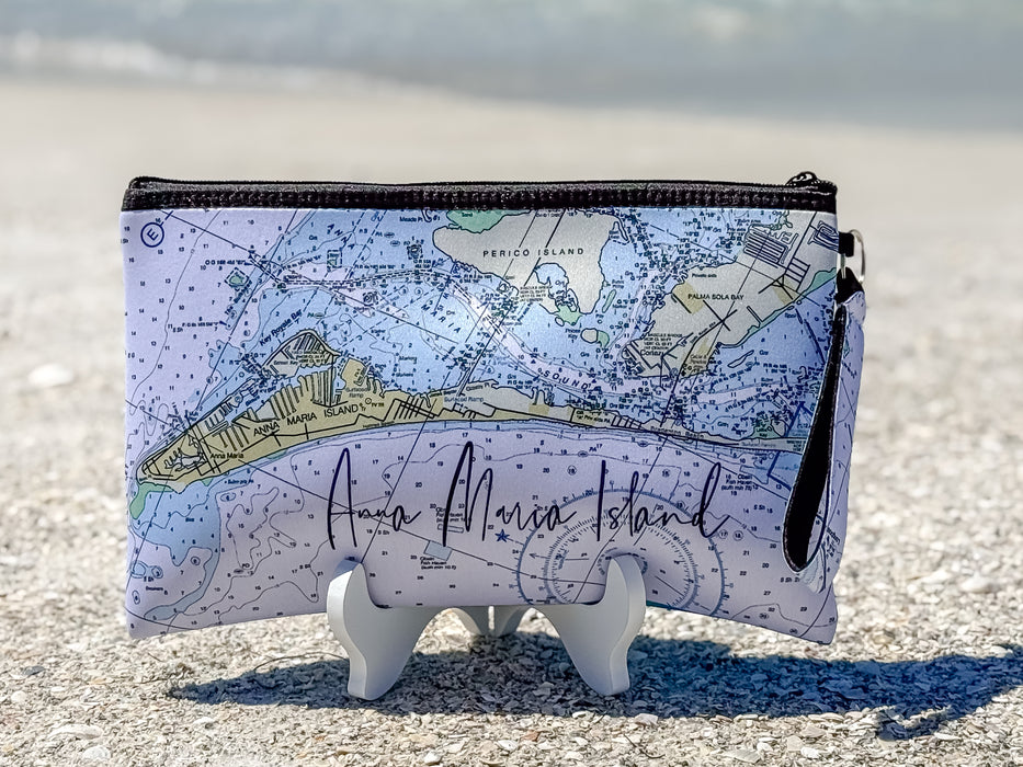 These pouches are perfect for storing and organizing all of your daily needs. Throw it in your purse or beach bag to make sure all of your essentials stay neat and dry! Choose from 4 different Beach Blossom Studio Originals Paintings and 2 maps of Anna Maria Island! Made of neoprene (which is waterproof!) and featuring a neoprene wrist strap.