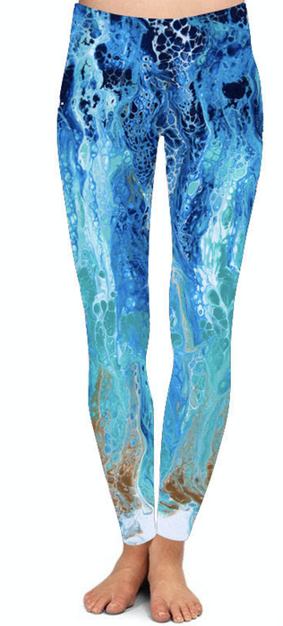 Ofter described as "the softest, most comfortable leggings I've ever owned!" They are lightweight and buttery soft. They stay in place and don't need to hitched up! (You know what I mean!) In addition to being insanely comfy, they are one of a kind! The designs start as original works of art created by Beach Blossom Studio. Each pair is inspired by the beach and designed to bring you joy!