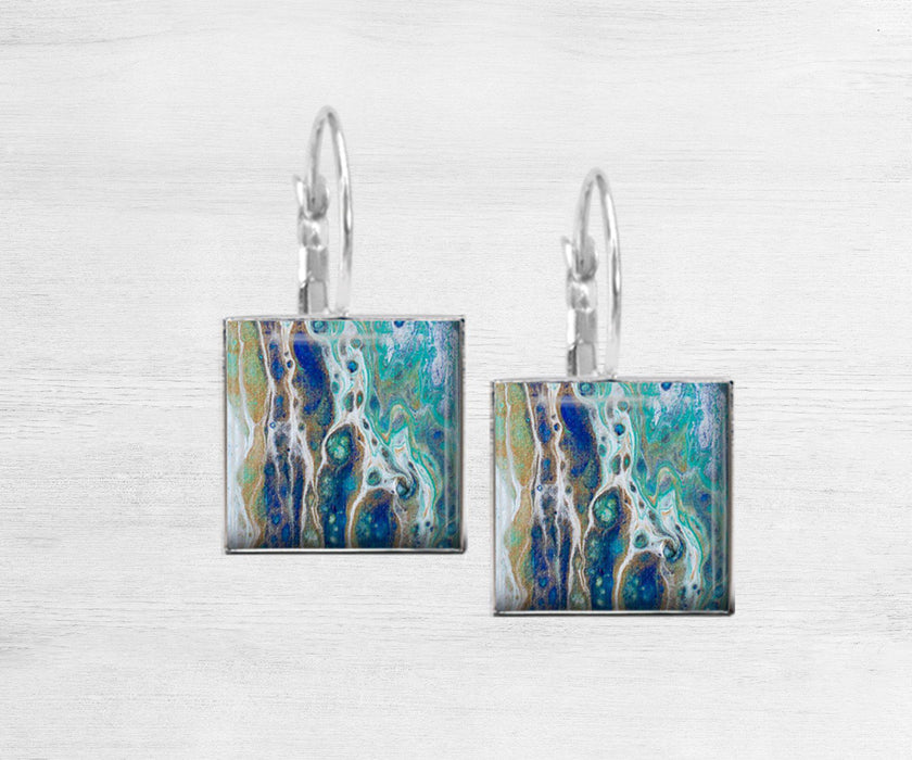 Sapphire Shores Square Dangle Earrings | Handmade Earrings | Beach Jewelry