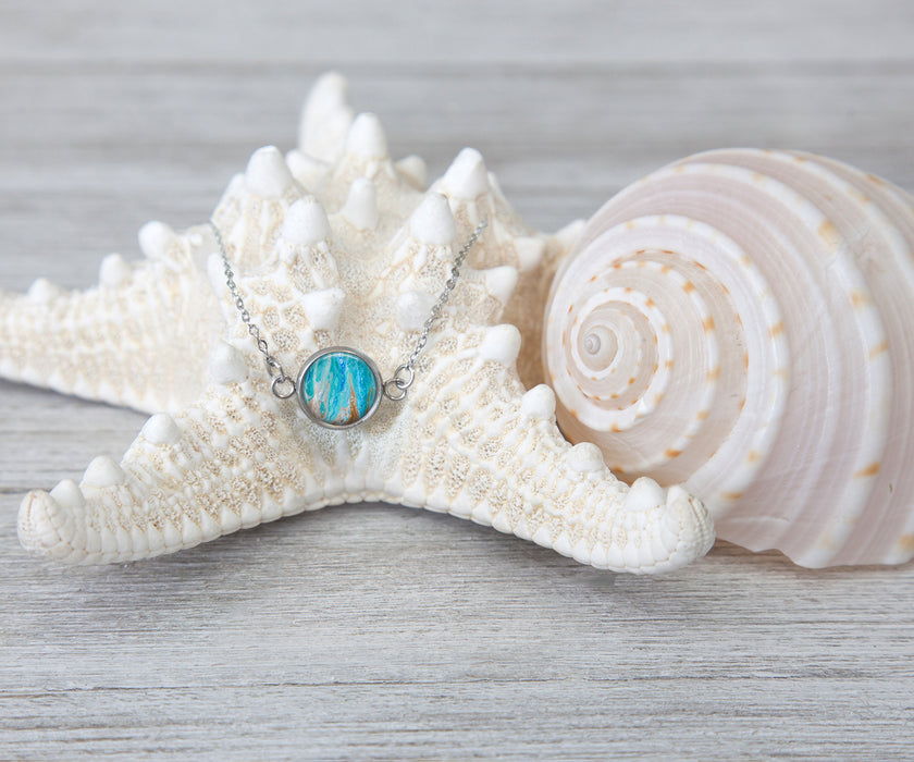 The Sea Dreams Circle Necklace features original artwork designed by Beach Blossom Studio, created to inspire you like a trip to your favorite beach.  Make a statement with this beautiful piece of wearable art from our Sea Dreams collection and click here to shop the full line of jewelry in this collection.