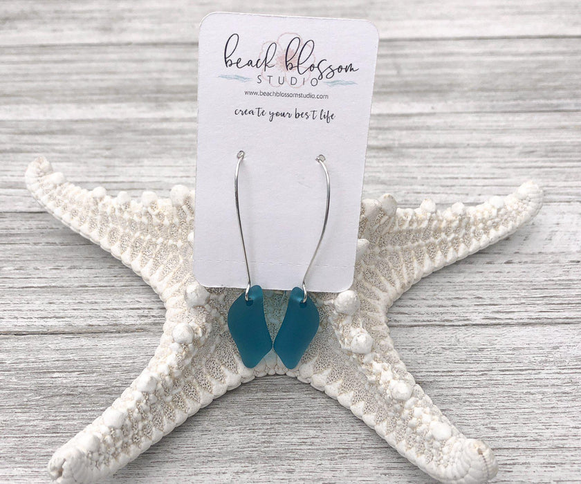 Teal Sea Glass Wave Long Dangle Earrings | Beach Jewelry